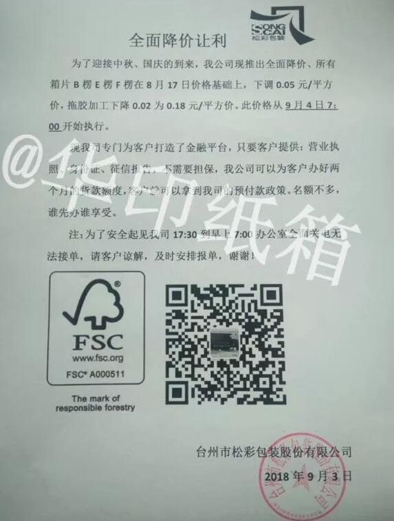 On August 24, Zhejiang Wenzhou Dongmu Paper Co., Ltd. also announced price cuts: due to a drop in the price of base paper, the price of medium tiles per square was reduced by 0.10 yuan, thin tiles per square by 0.13 yuan, micro tiles per square by 0.13 yuan, and open paper per square by 0.06 yuan.