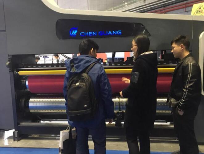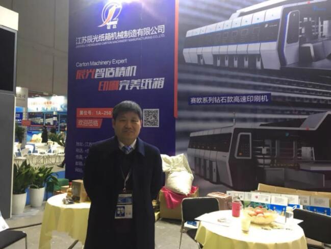 江蘇辰光紙箱機械制造有限公司展出的是歐萊寶系列全程吸附水墨印刷開槽模切機,外觀非常炫酷!辰光的??傆诎倜χ薪邮芰巳A印小編的采訪,為我們詳細介紹了這款機器的優(yōu)點。
