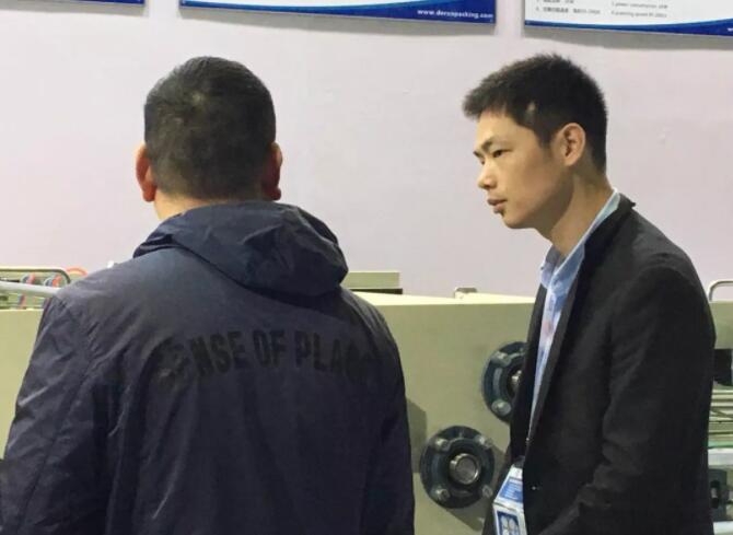 △德瑞包裝的熊總(右)正在為客戶介紹設(shè)備