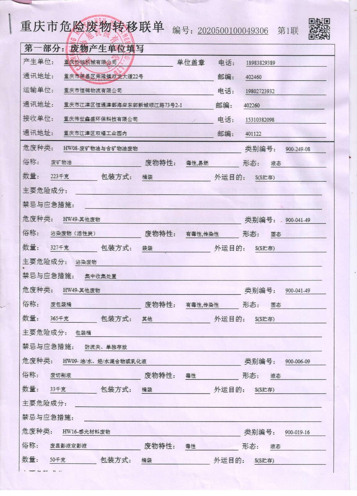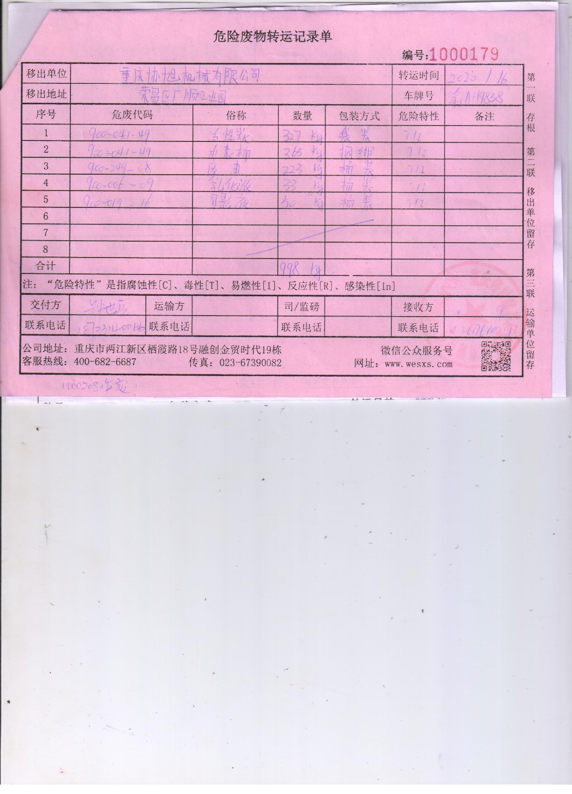 2020年1月16日危險(xiǎn)廢物轉(zhuǎn)運(yùn)